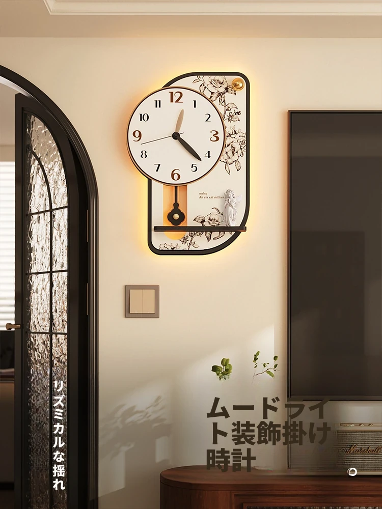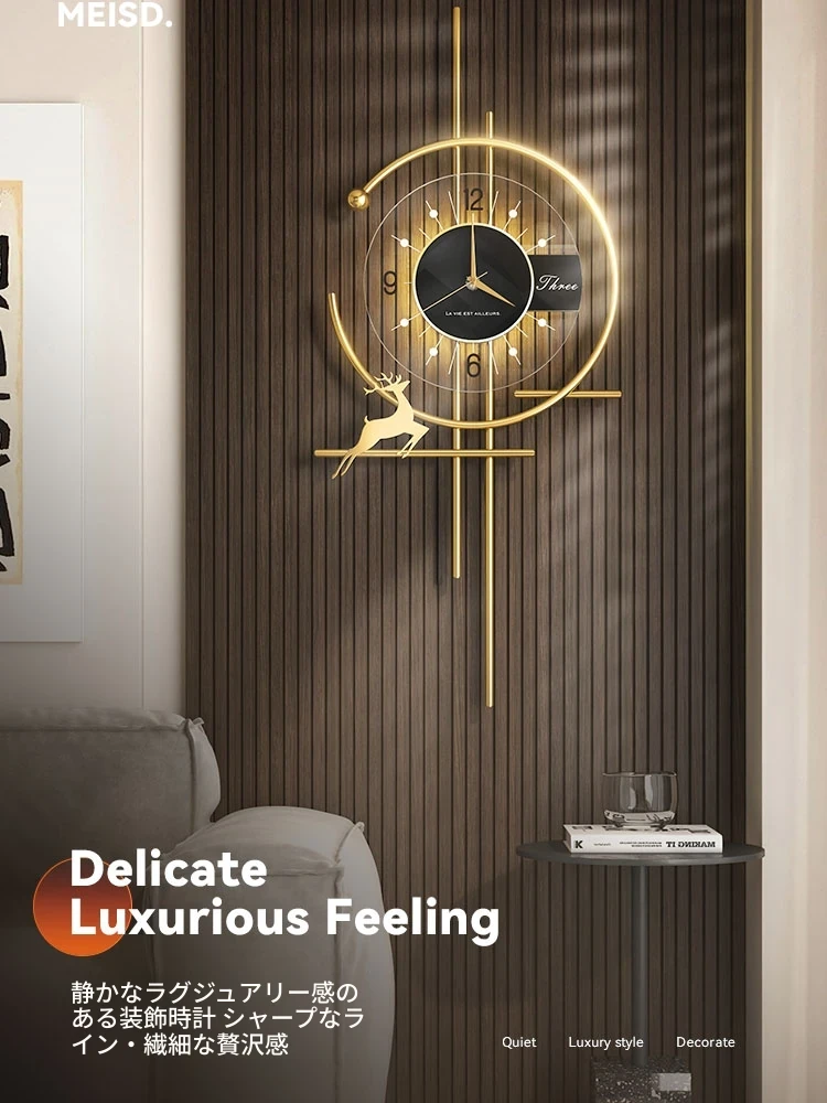 美世达高級リビング掛時計2025年新作!モダンでラグジュアリーなデザイン、家庭用の創造的な壁掛け時計。インテリアを引き立てるスタイリッシュな照明機能付き!