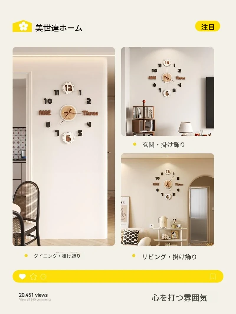 美世达の個性的でクリエイティブな掛け時計 - おしゃれなリビングにぴったり!2025年新作、モダンでシンプルなウォールクロック。あなたの空間を魅力的に彩ります!
