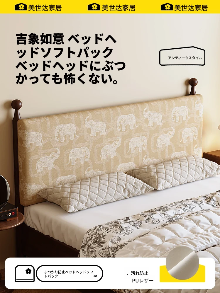 ミスタ中古風レザー製ソフトパックヘッドボード、畳スタイルの衝突防止クッション。高級感あふれるデザインで、取り外し可能で洗える仕様。快適な睡眠空間を演出します!