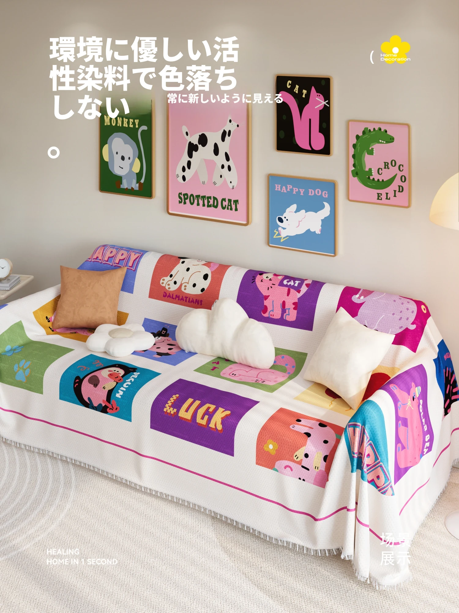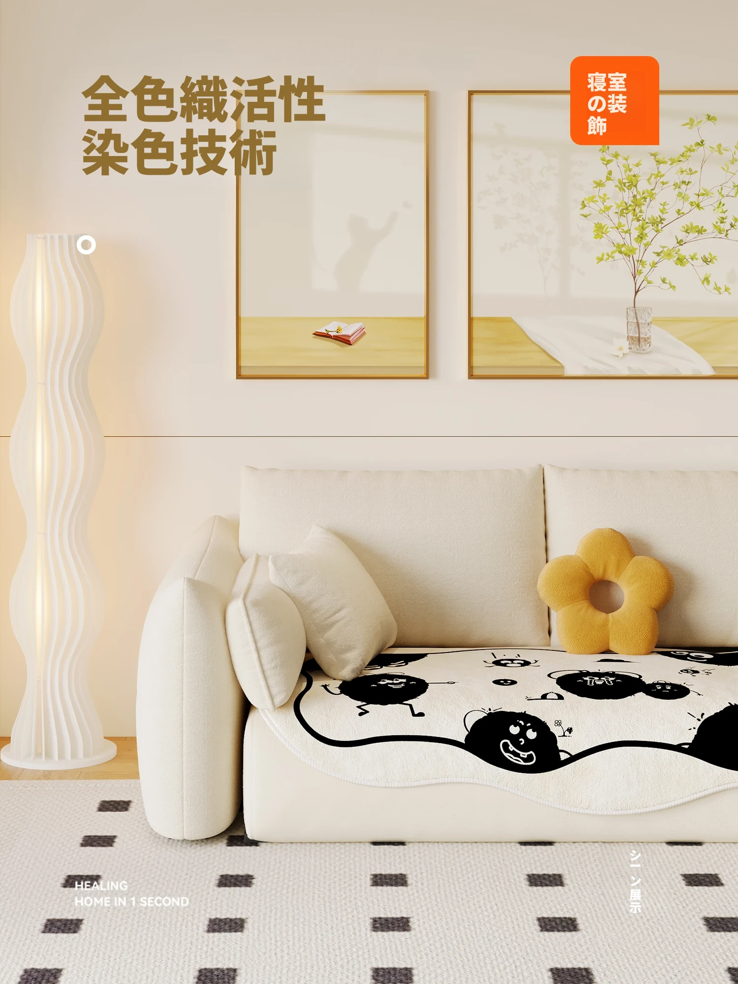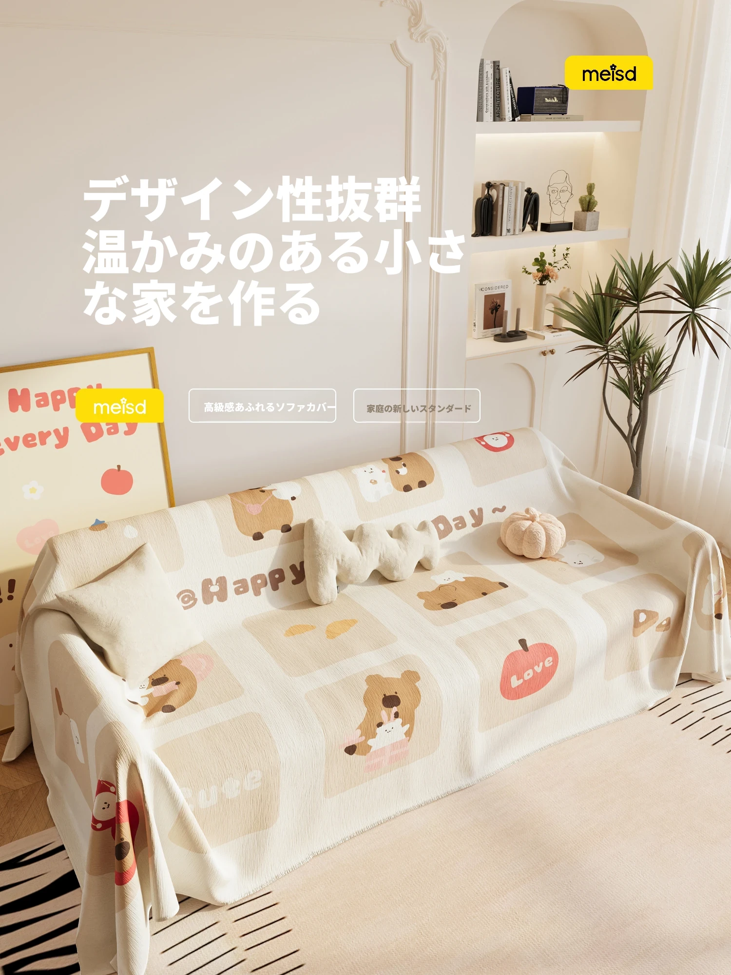 美世达2024年新作!四季対応の高級カートゥーンソファカバー - フルカバータイプで、腕置きも守る!お部屋をおしゃれに変身させるアイテムです。