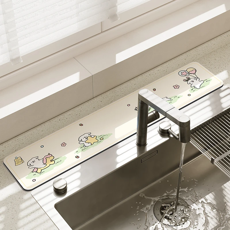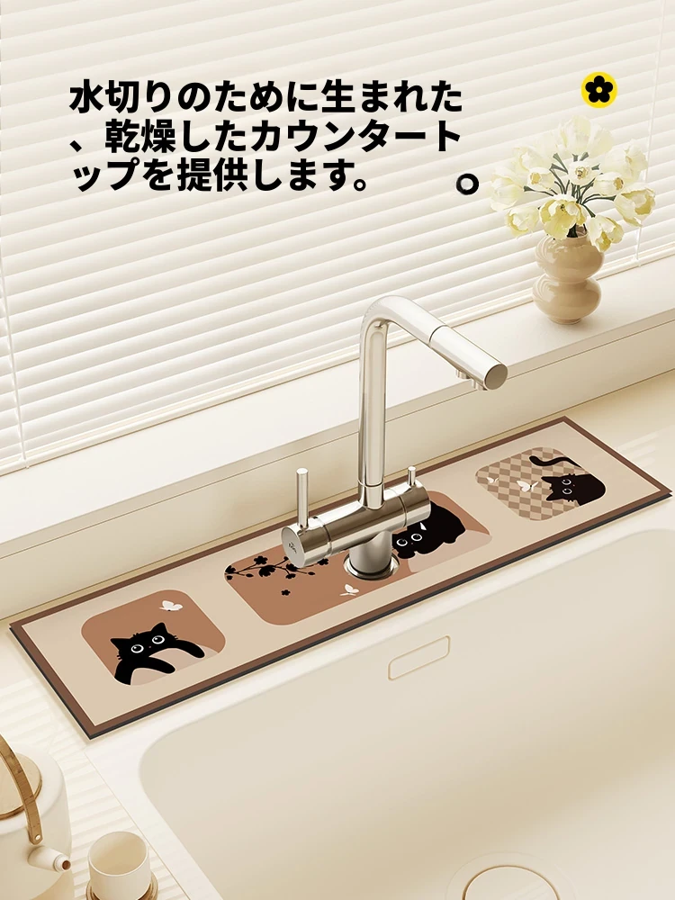 美世达キッチン専用水栓マット - シンク・洗面台用の水切りマット!家庭用のデザイン性に優れた珪藻土マットで、快適なキッチンライフを実現します。水分を素早く吸収し、清潔感を保つための必需品です!