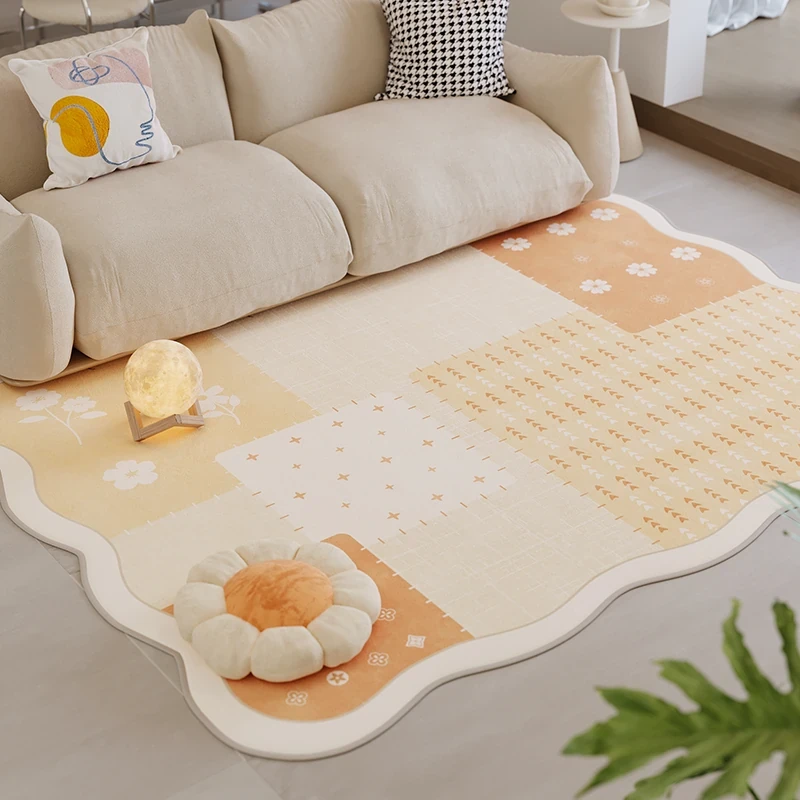 ミセダカーペット2024年新作!お手入れ簡単、拭き掃除可能、防水設計のクリーム風軽奢スタイル。リビングやベッドルームに最適な高級ソファサイドカーペット!