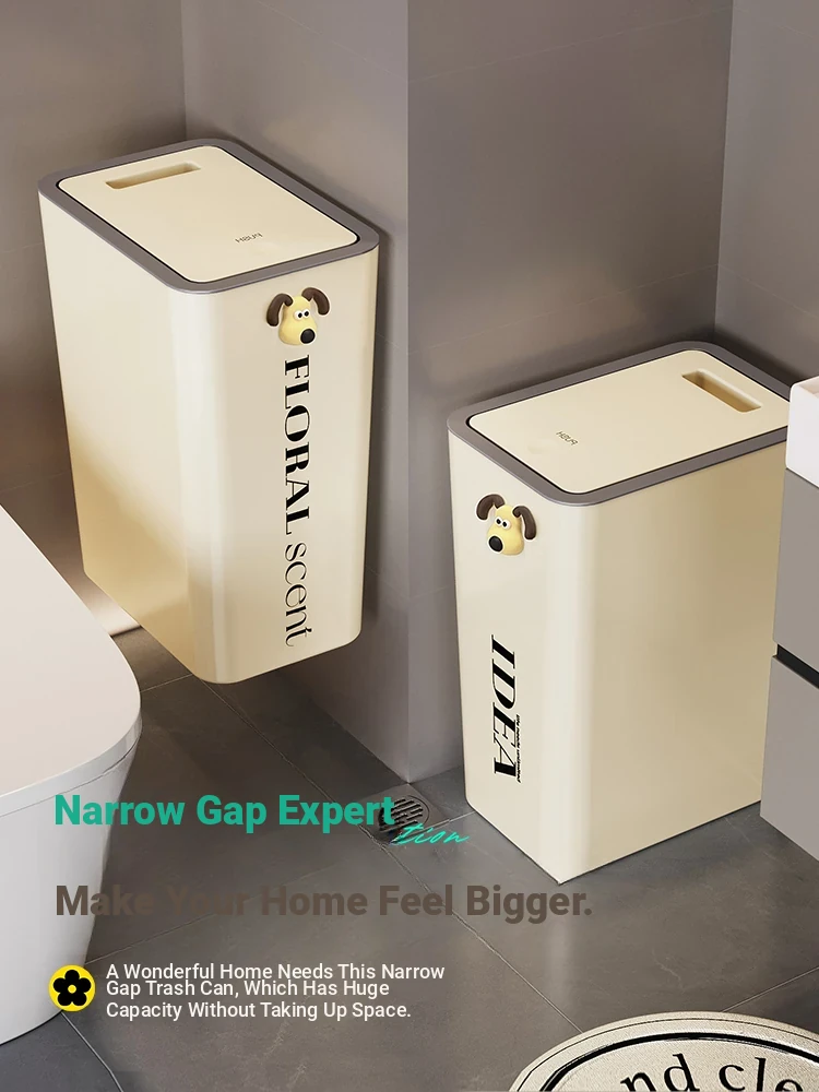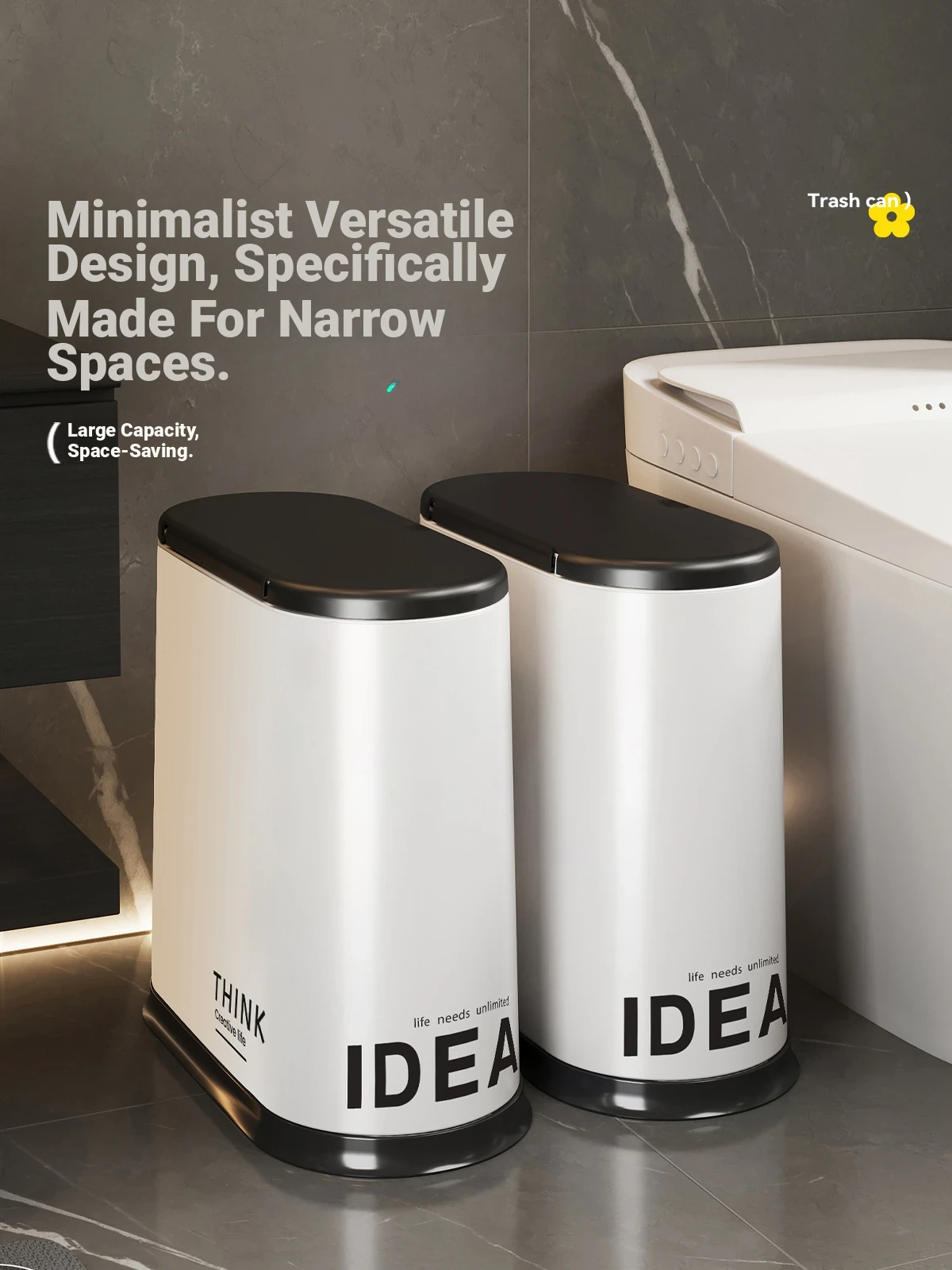 Stylish Large Capacity Bathroom Trash Can with Lid - Perfect for Tight Spaces, Ideal for Toilets and Restrooms, High-Quality Design for Modern Homes