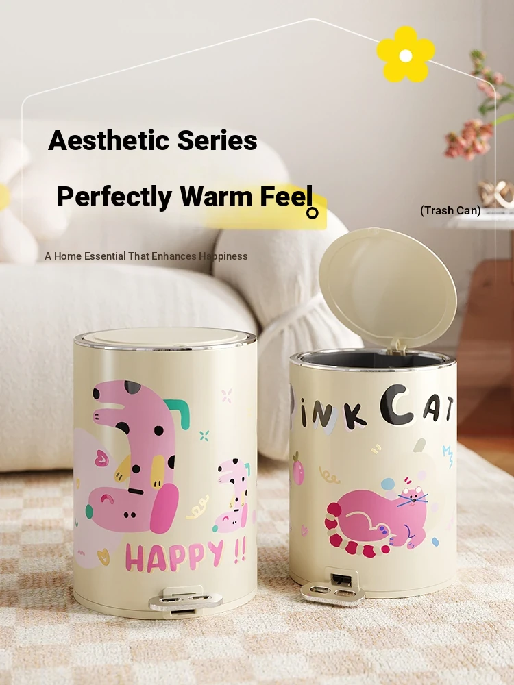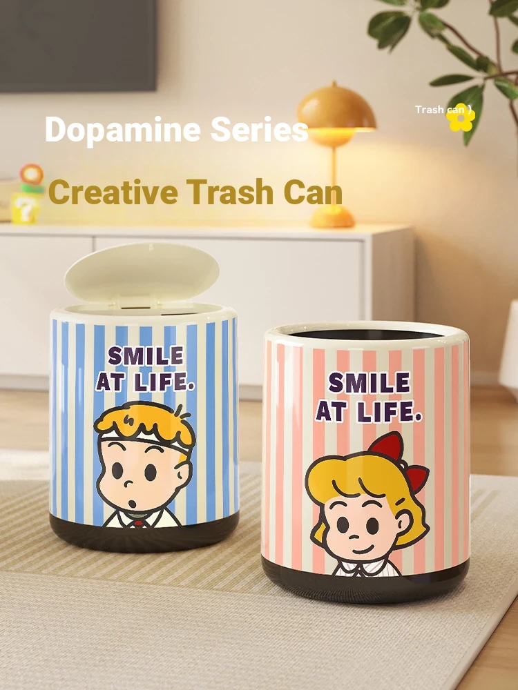Stylish 2025 Meisida Trash Can - Cute Cartoon Design for Home, Perfect for Living Room & Bedroom, Large Size for Maximum Convenience