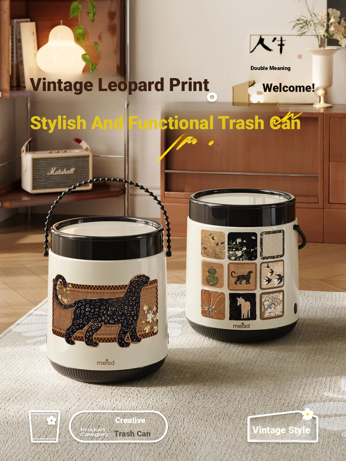 Meisida Vintage Style Trash Can with Lid - Large Capacity Household Waste Bin for Living Room and Bedroom - 2025 New Model