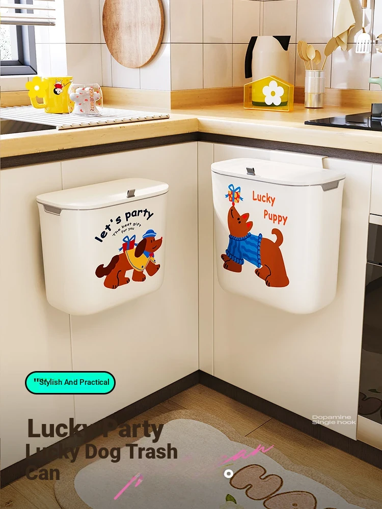 Meisida 2025 New Cartoon Dog Trash Can - Large Capacity Press-Type Waste Bin with Lid for Living Room and Bedroom, Perfect for Home Use