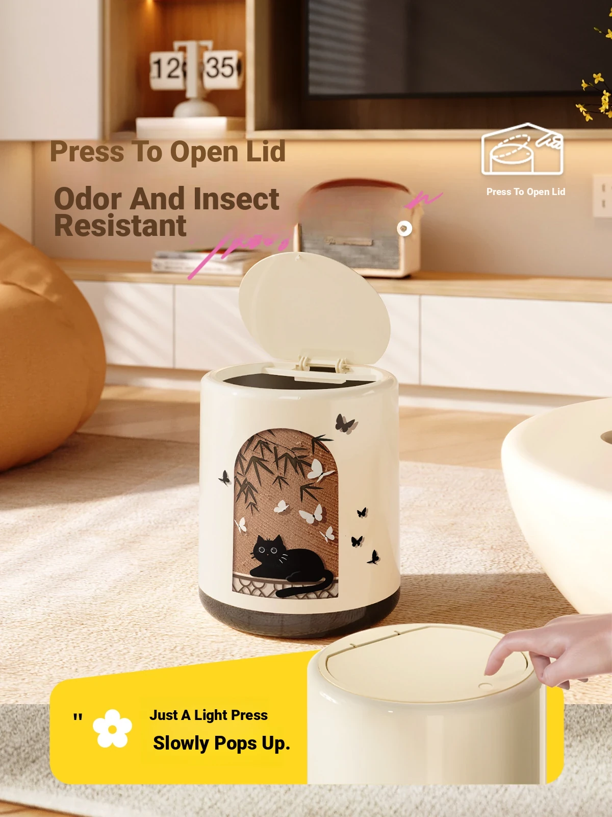 Meista Cute Cartoon Cat Trash Can - Stylish and Space-Saving, Perfect for Home and Living Room, Large Capacity with Easy Press Design for Bedroom and Storage Needs