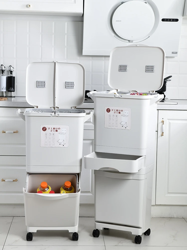 Meisida Japanese Style Large Capacity Kitchen Trash Can with Lid - Double Layer Design for Efficient Wet and Dry Separation, Foot Pedal Operation, Perfect for Home Use