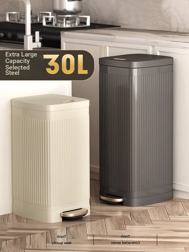 Stylish Large Capacity Stainless Steel Trash Can with Foot Pedal and Lid - Vintage Design, Double-Layered, Perfect for Home Use, New Creative Model