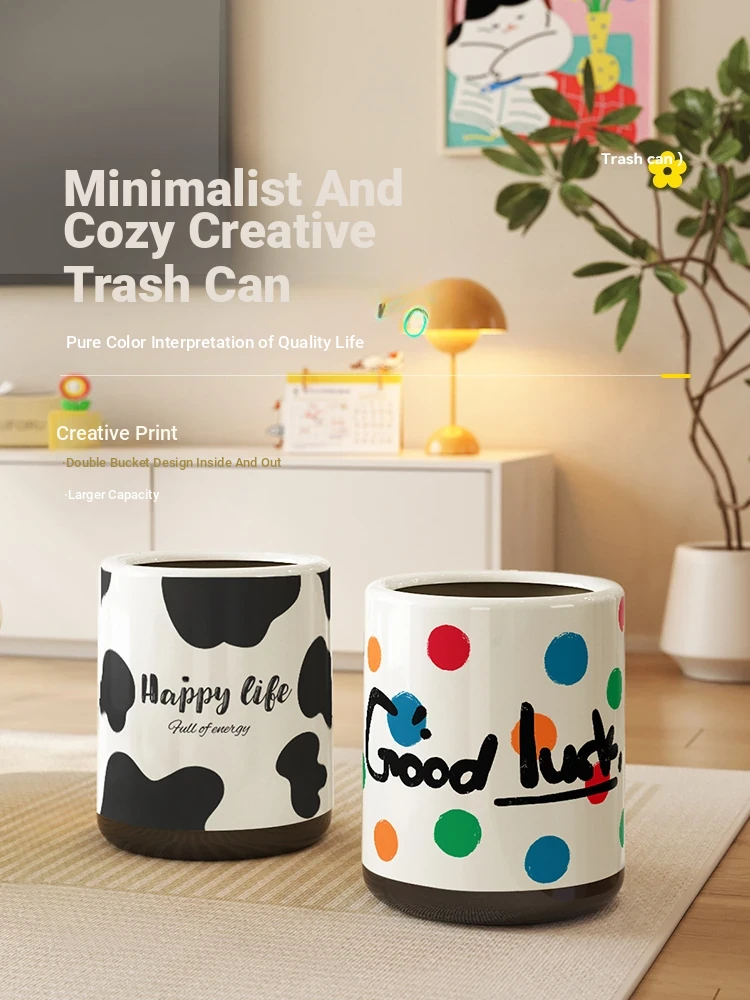 Stylish and Creative Cartoon Cream Trash Can - Large Capacity Household Bin for Living Room, Bedroom, and Bathroom