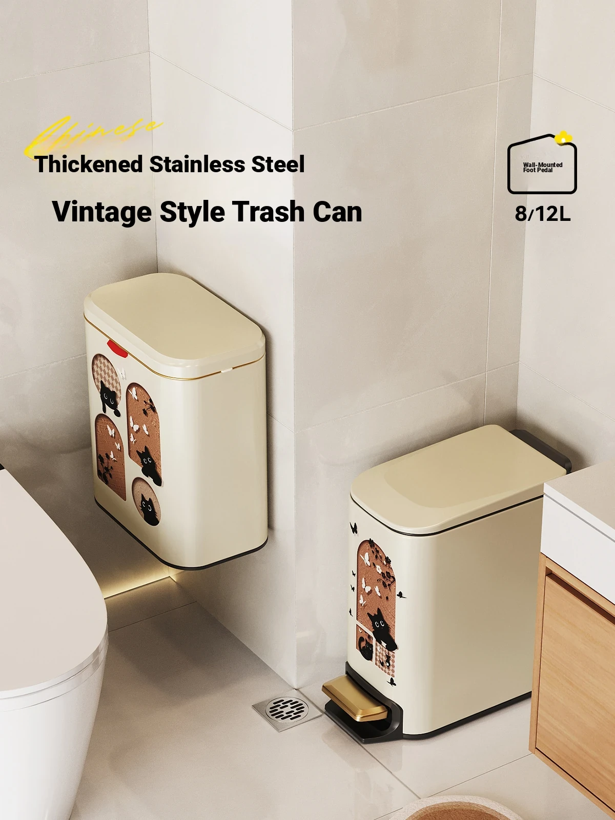 Stylish Stainless Steel Trash Can - High-Quality Home Storage Solution with Vintage Luxury Design, Foot Pedal Operation, and Large Capacity for Effortless Waste Management