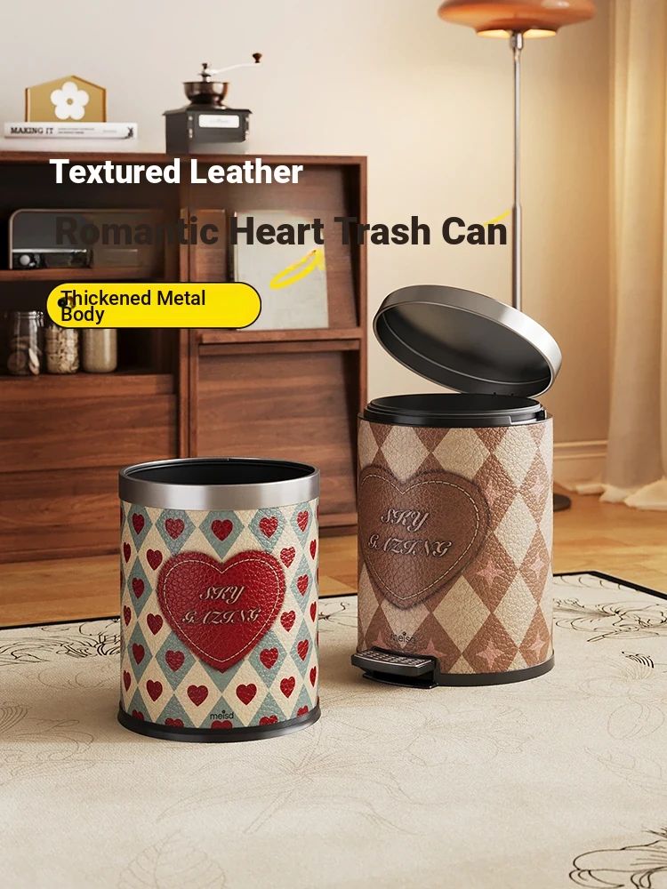 Meisida High-Capacity Vintage Style Trash Can for Home - Elegant Leather Design with Foot Pedal and Double-Layered Bin, Perfect for Living Room and Bedroom