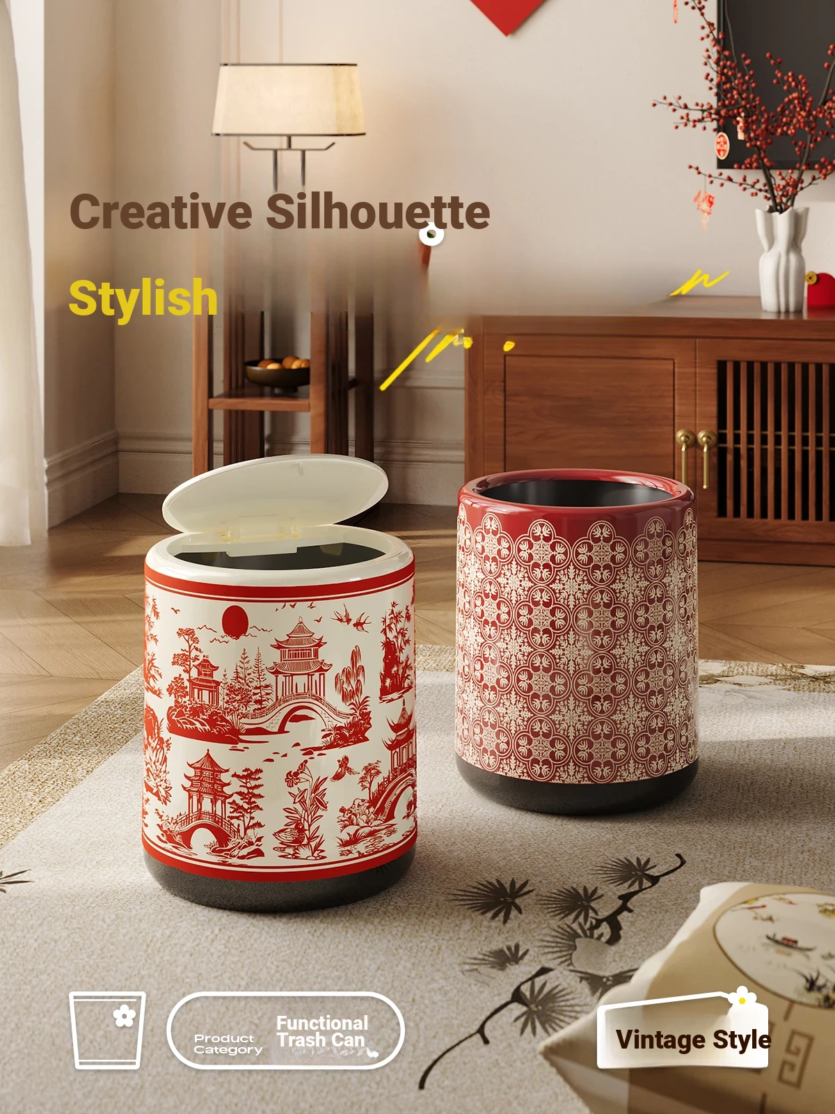 Meisida Vintage Style Trash Can 2025 New Model – Elegant and Chic Household Waste Bin with Lid for Living Room and Bedroom