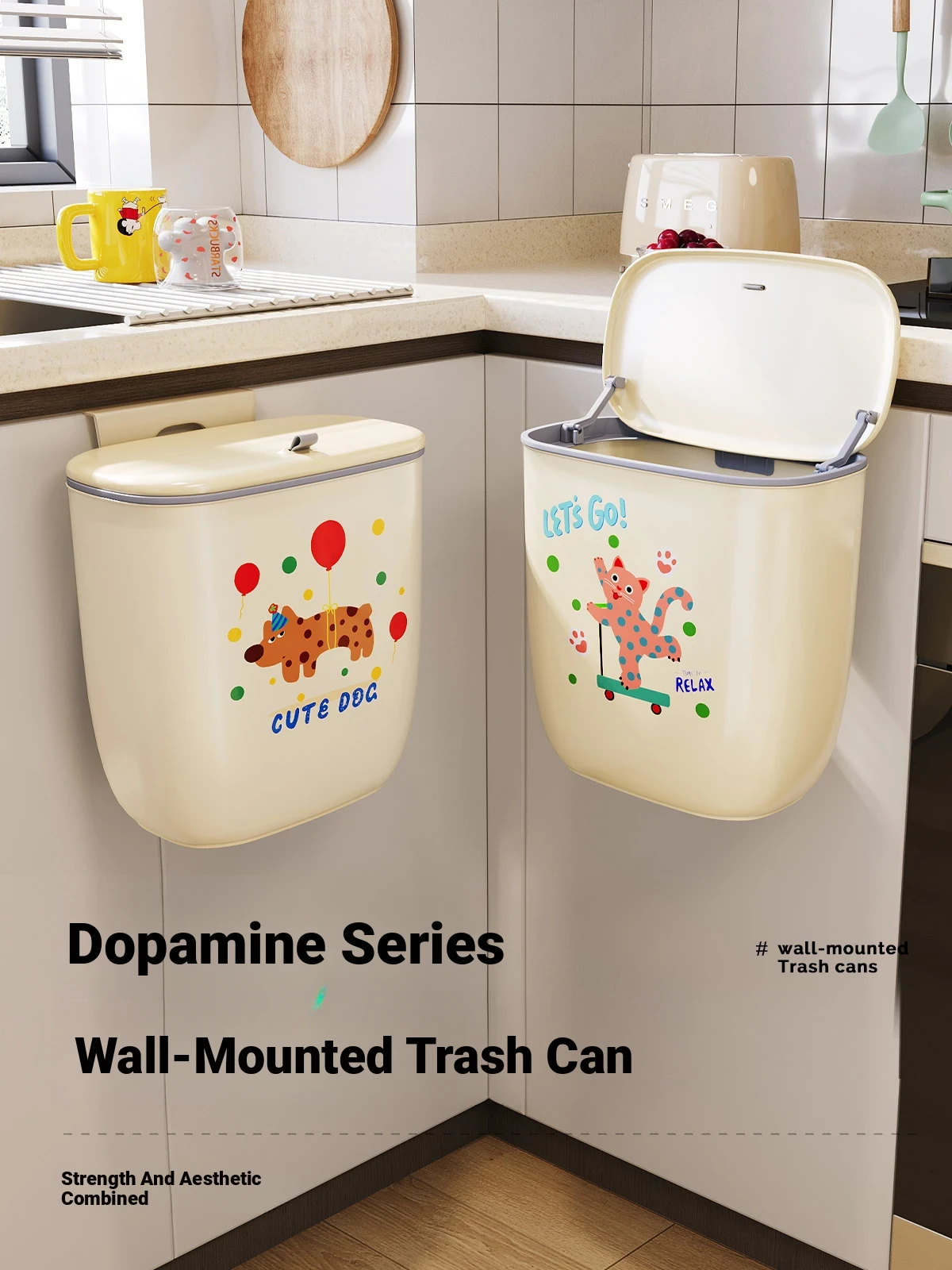 Creative Wall-Mounted Dog-Themed Kitchen Trash Can with Lid - Perfect for Home Use and Cabinet Door Storage Solution for Food Waste and Paper Disposal