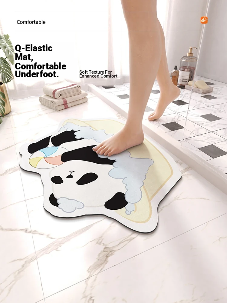 Meisida Absorbent Bathroom Mat - Non-Slip Panda Shaped Rug for Kids, Perfect for Bathroom and Toilet Entrance, Cartoon Design for Fun and Safety