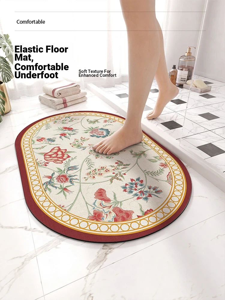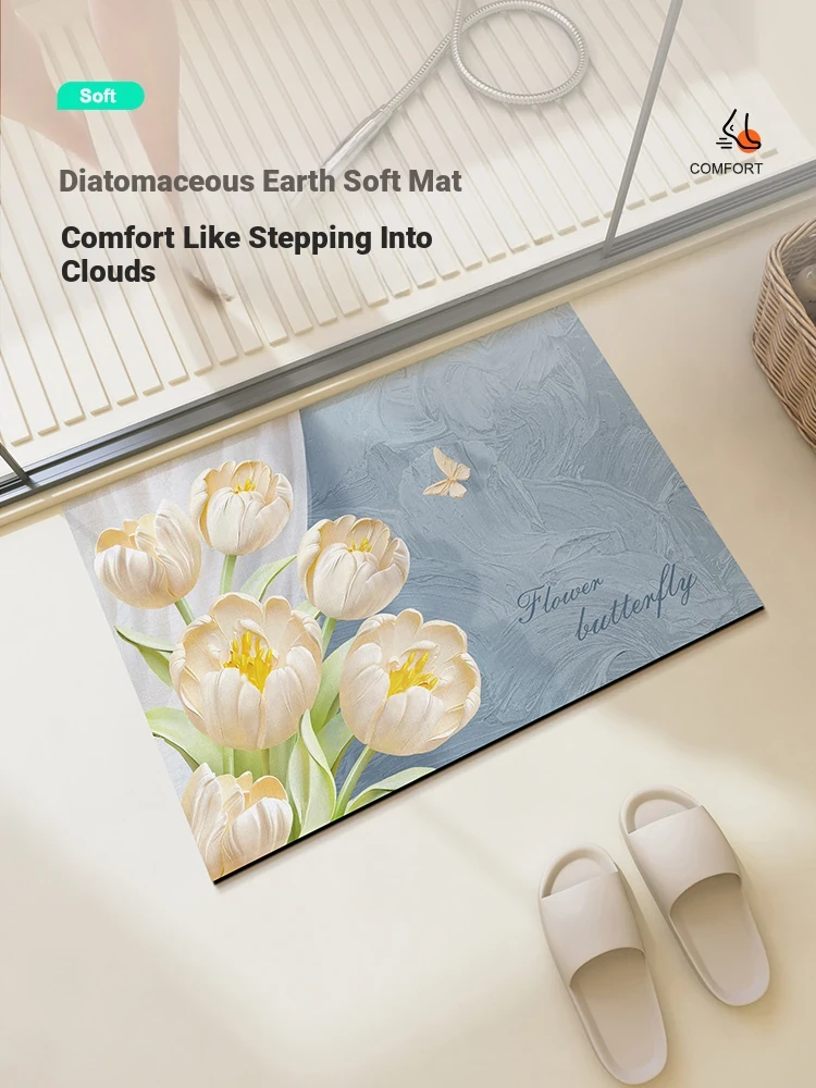 Meisida Diatomaceous Earth Soft Bath Mat - Floral Waterproof Non-Slip Door Mat for Bathrooms and Toilets, Super Absorbent and Stylish Design