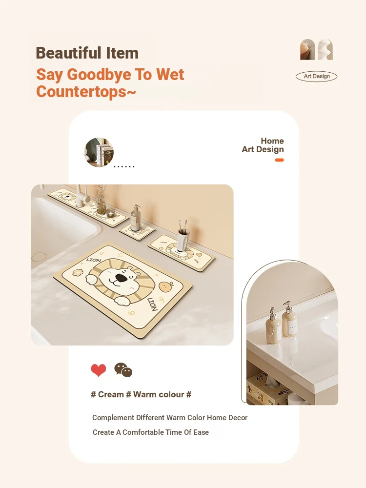 Cuttable Water Absorbent Mat for Kitchen and Bathroom Sinks - Narrow Diatomaceous Earth Waterproof and Non-Slip Drain Mat