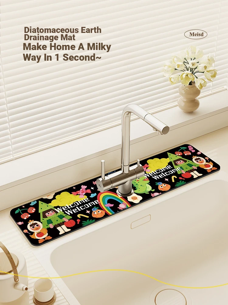 Meisida Cartoon Faucet Mat - Kitchen Non-Slip Water Absorbent Pad for Sink Drainage, Waterproof and Easy to Clean, Perfect for Busy Kitchens!
