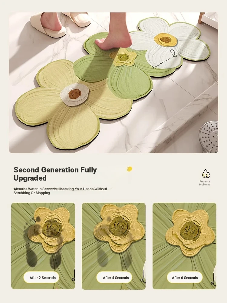 Meisida Diatomaceous Earth Soft Bath Mat - Floral Waterproof Non-Slip Door Mat for Bathrooms and Toilets, Super Absorbent and Stylish Design