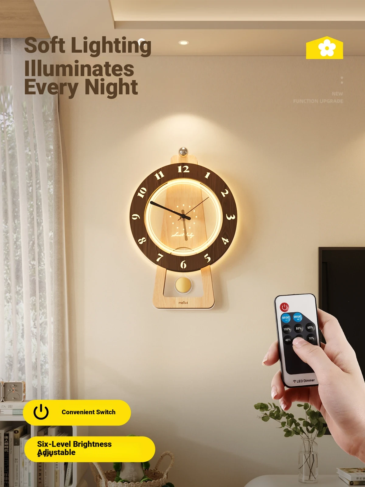Meisida Creative Wall Clock 2025 New Design - Minimalist Modern Hanging Clock with Wall Light for Living Room - Perfect Home Decor Timepiece