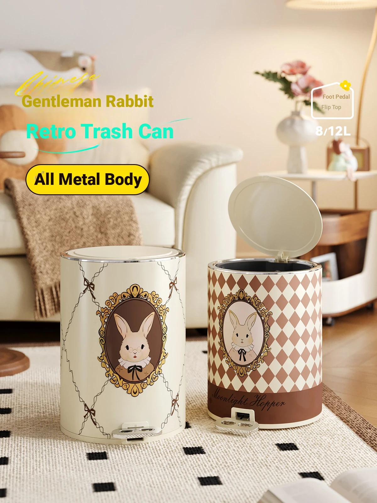 Stylish Large Capacity Stainless Steel Trash Can with Foot Pedal and Lid - Vintage Design, Double-Layered, Perfect for Home Use, New Creative Model