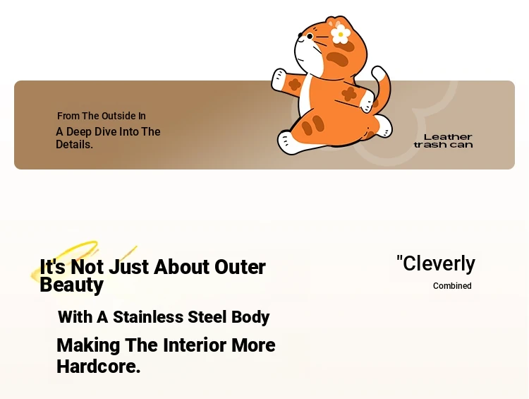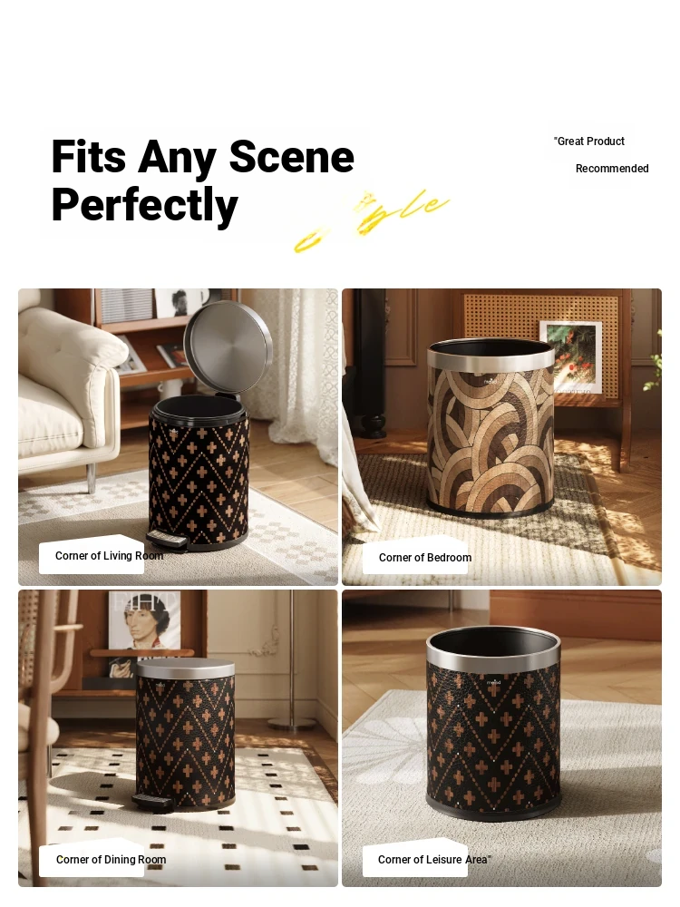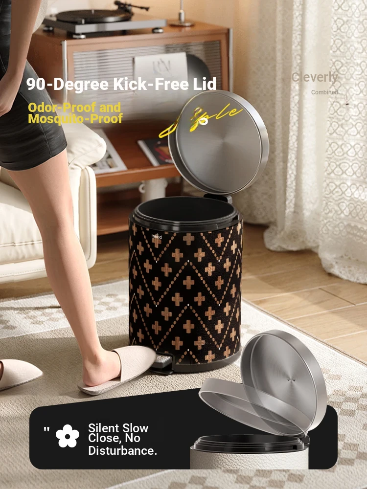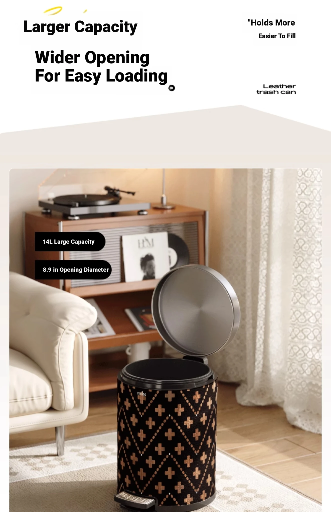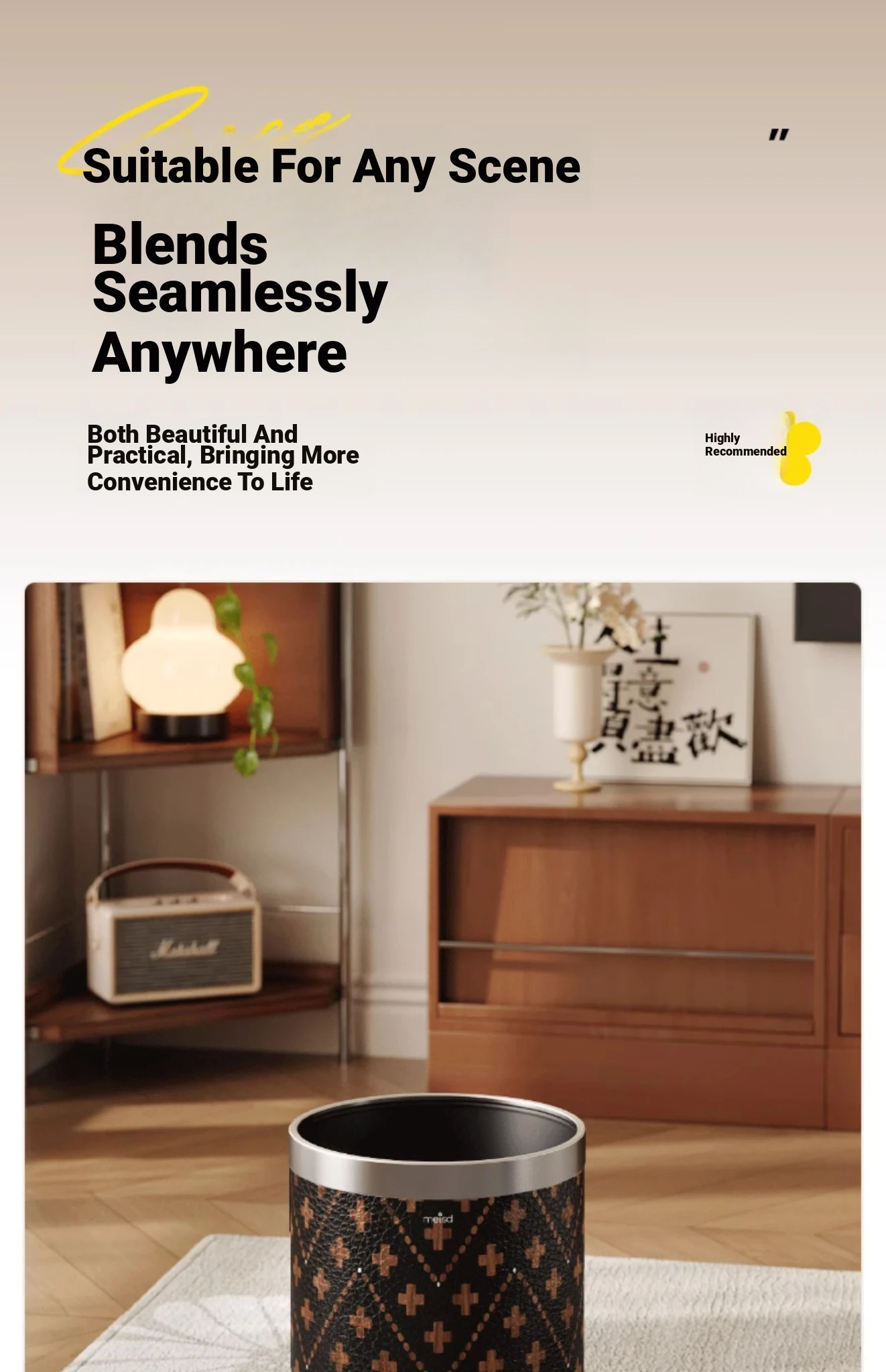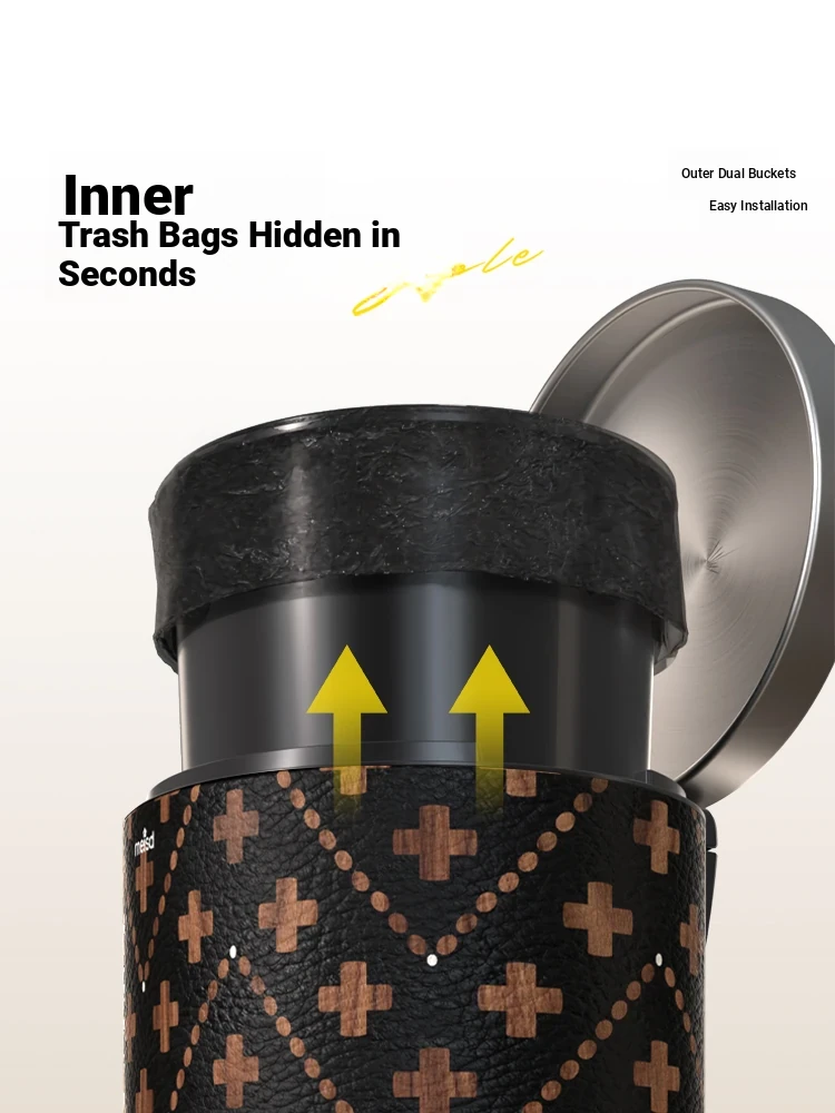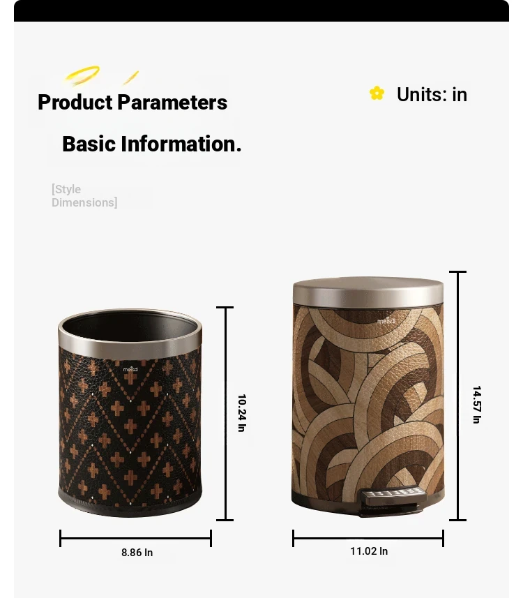 Meisida Vintage Style Leather Trash Can - Elegant Stainless Steel Covered Waste Bin for Home Living Room - Chic and Stylish Design for Modern Spaces