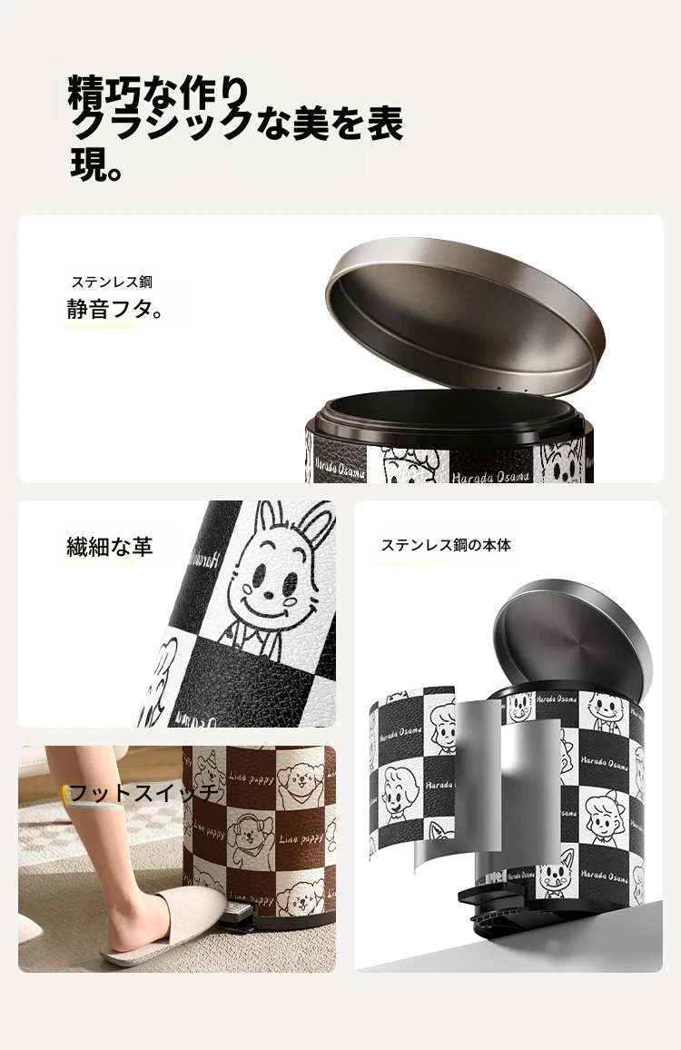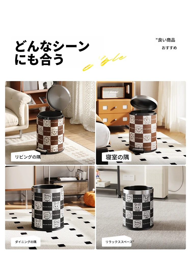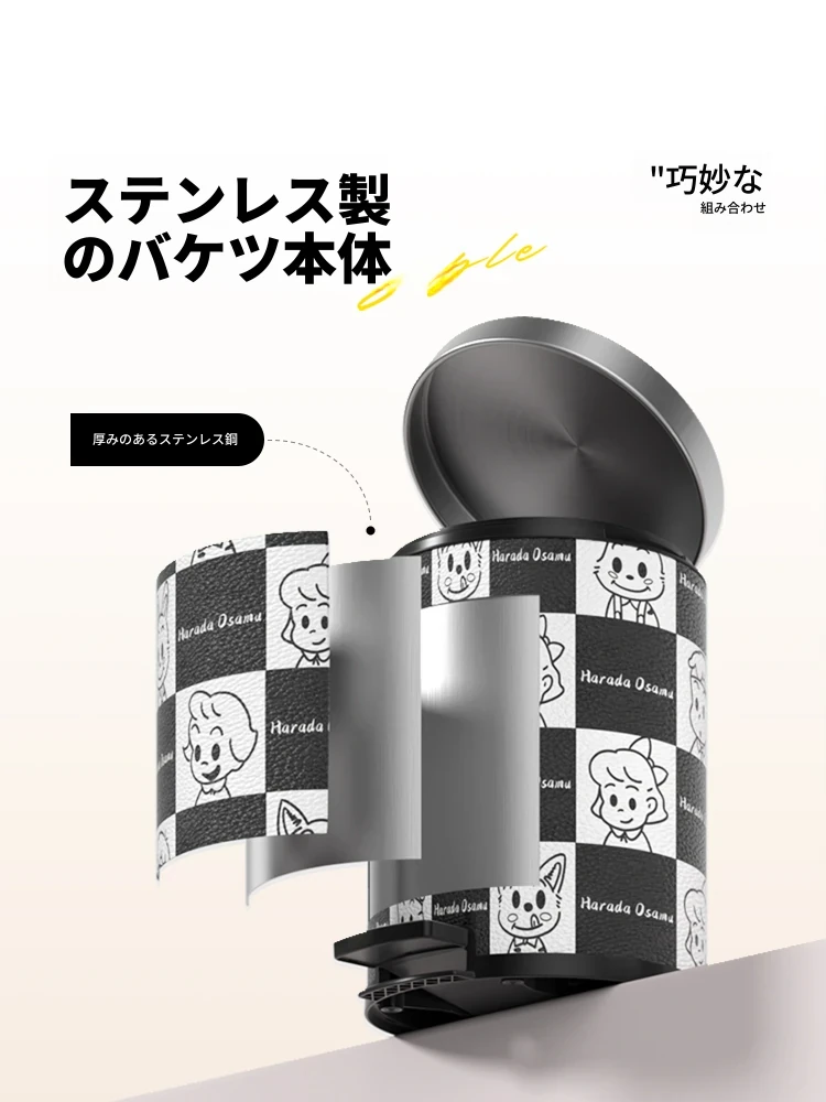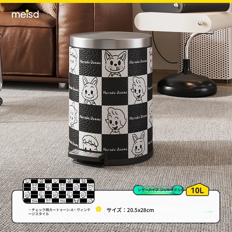 チェックカートゥーン-A⭐10L⭐メタル蓋フットペダルタイプ