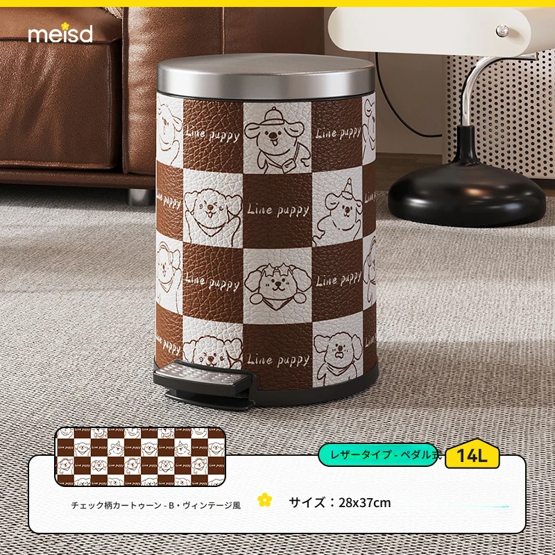 チェックカートゥーン-B⭐14L⭐メタル蓋フットペダルタイプ