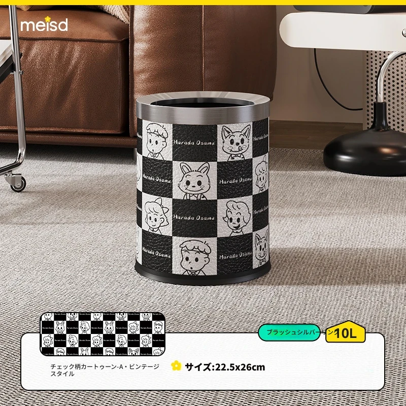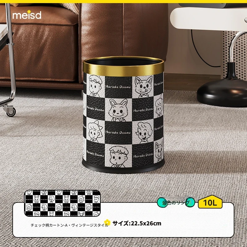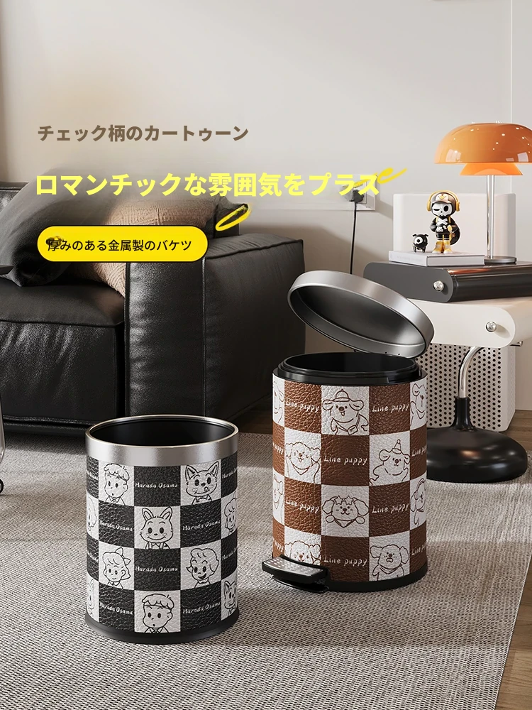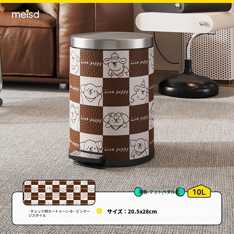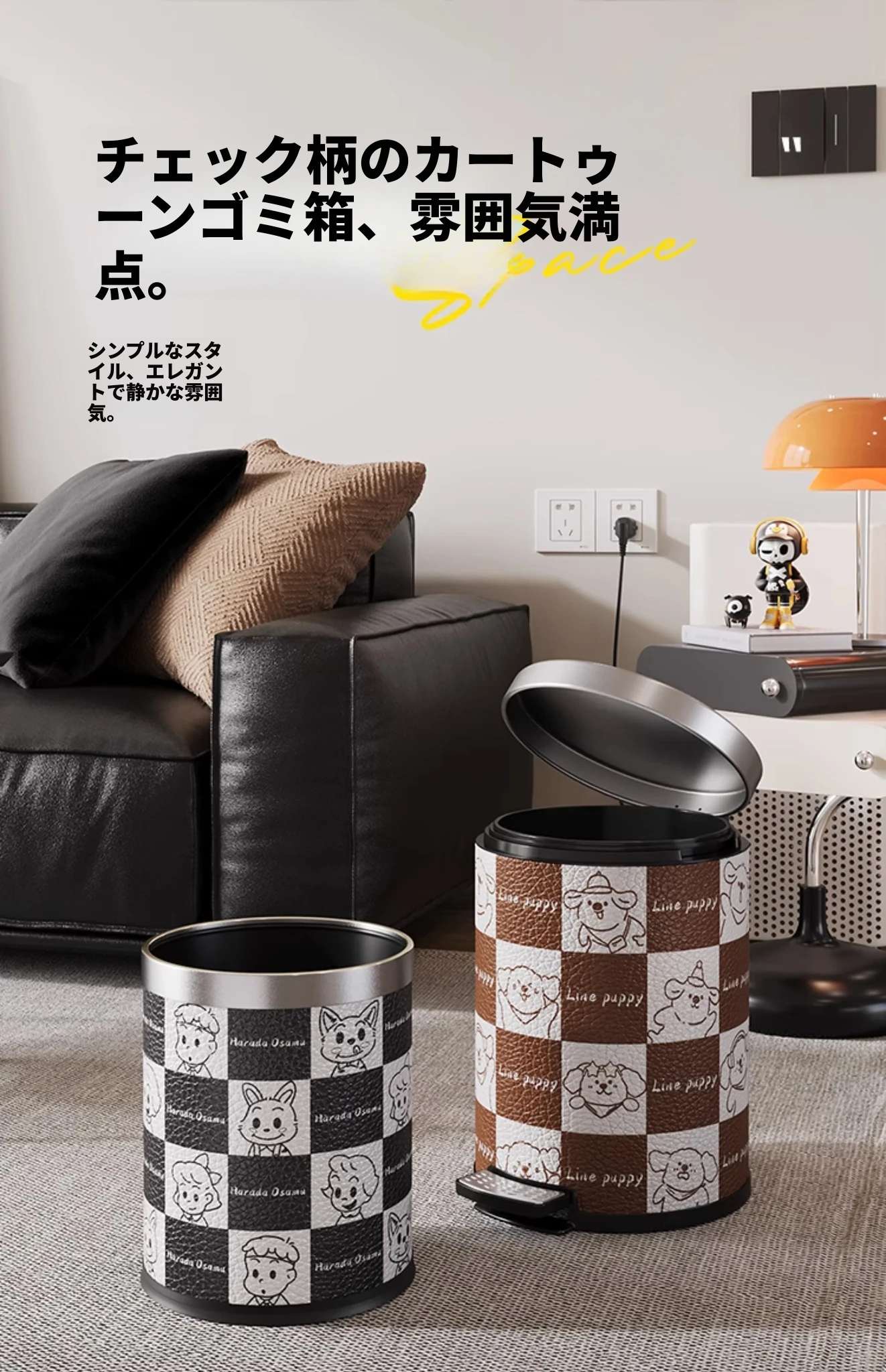 チェックカートゥーン-B⭐10L⭐メタル蓋フットペダルタイプ