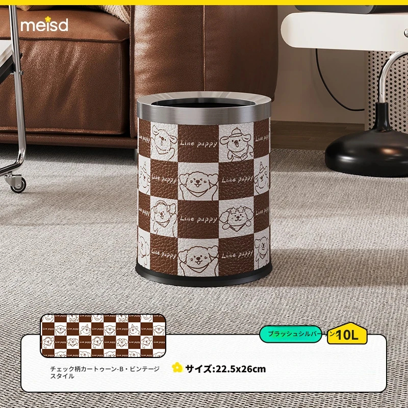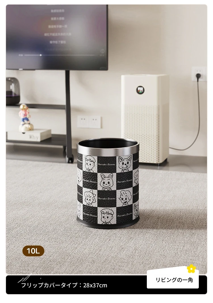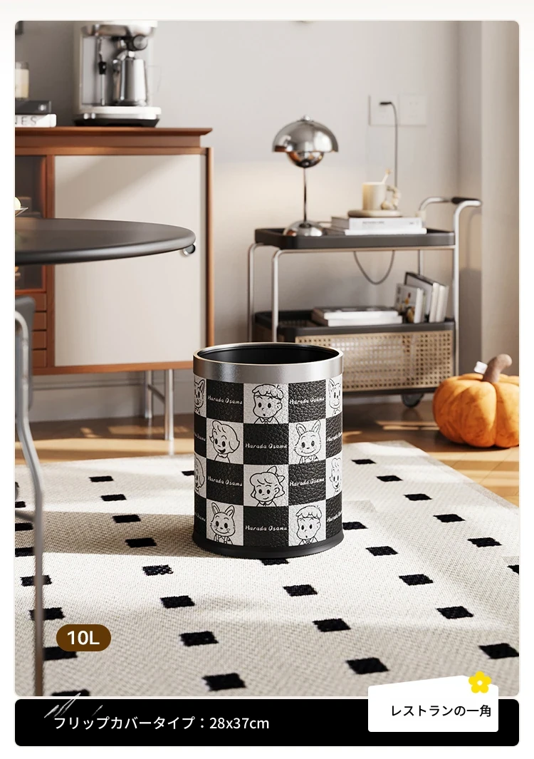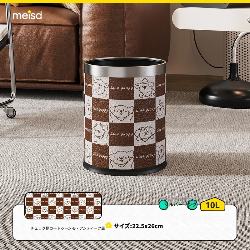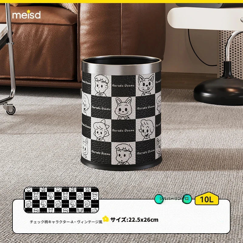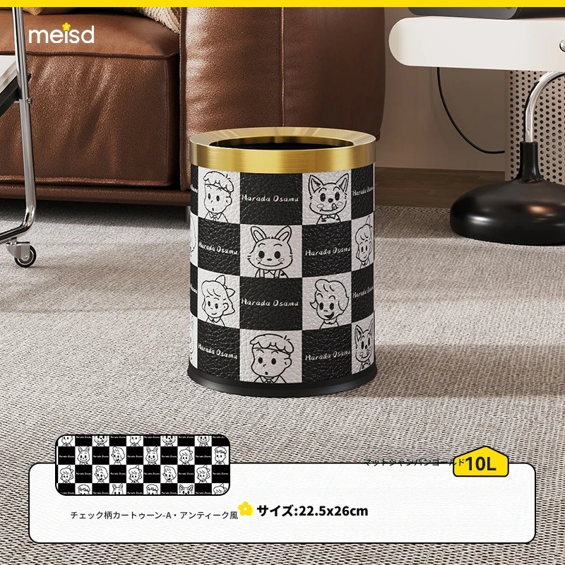 チェックカートゥーン-B⭐10L⭐メタル蓋フットペダルタイプ