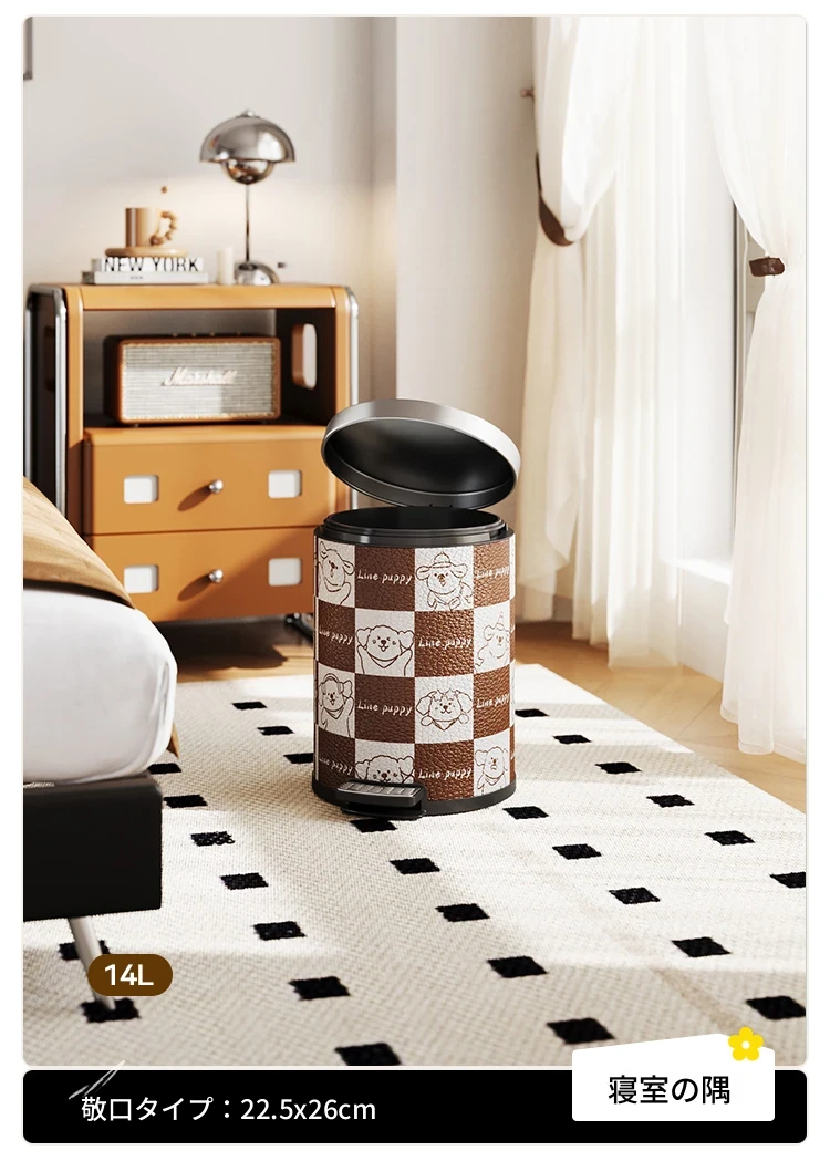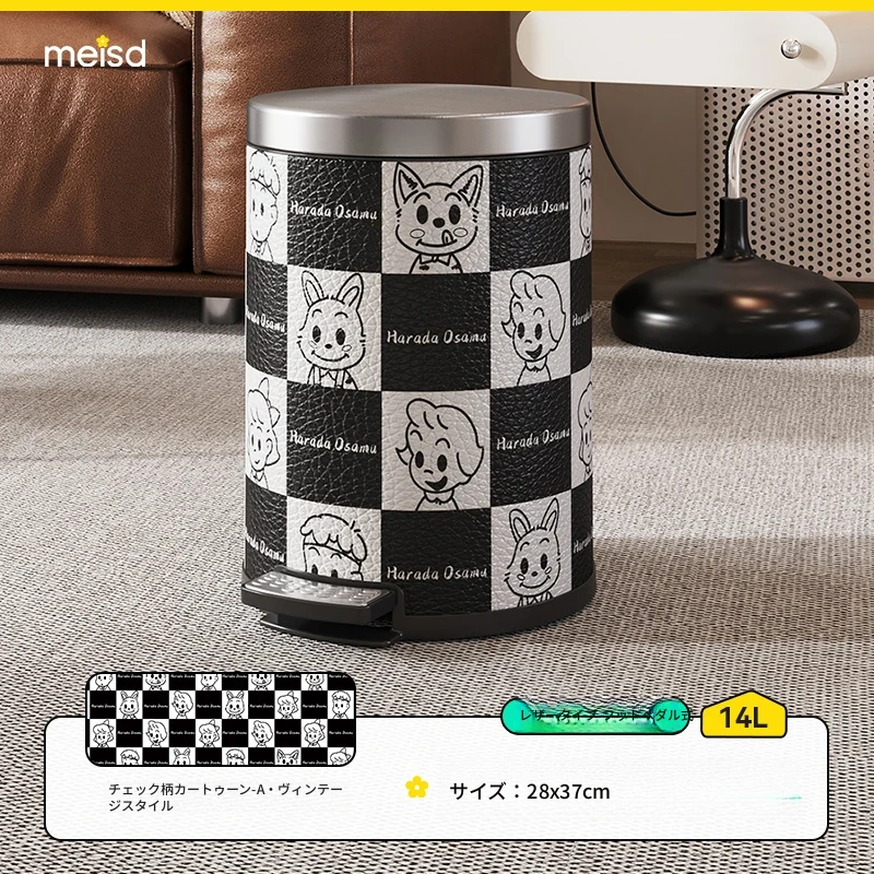 チェックカートゥーン-A⭐14L⭐メタル蓋フットペダルタイプ